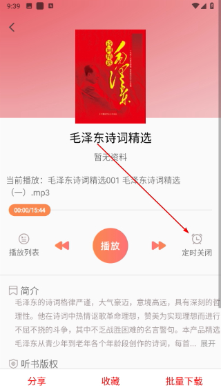 2、選擇目標(biāo)聽(tīng)書內(nèi)容,進(jìn)入聽(tīng)書播放界面。